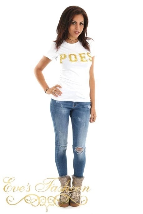 AW Private Label - POES Tshirt White / Gold<br>Model draagt maat XS
