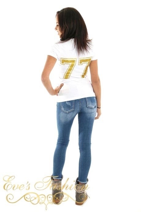 AW Private Label - POES Tshirt White / Gold Model draagt maat XS