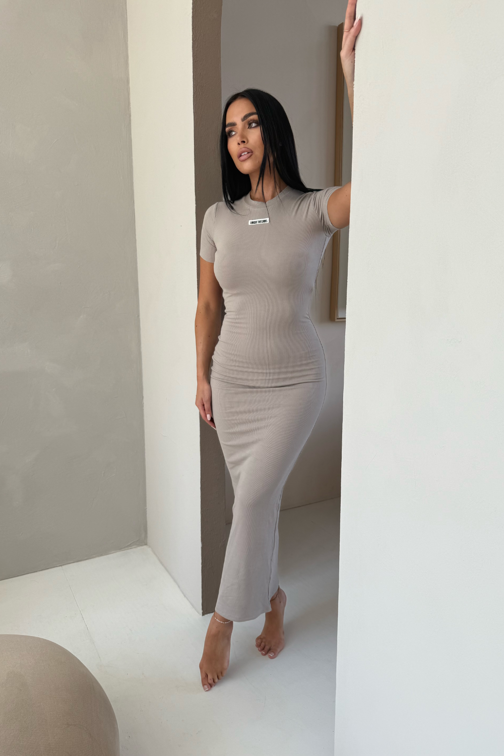 UNIQUE THE LABEL Donna T-shirt Ribbed Dress Pebble