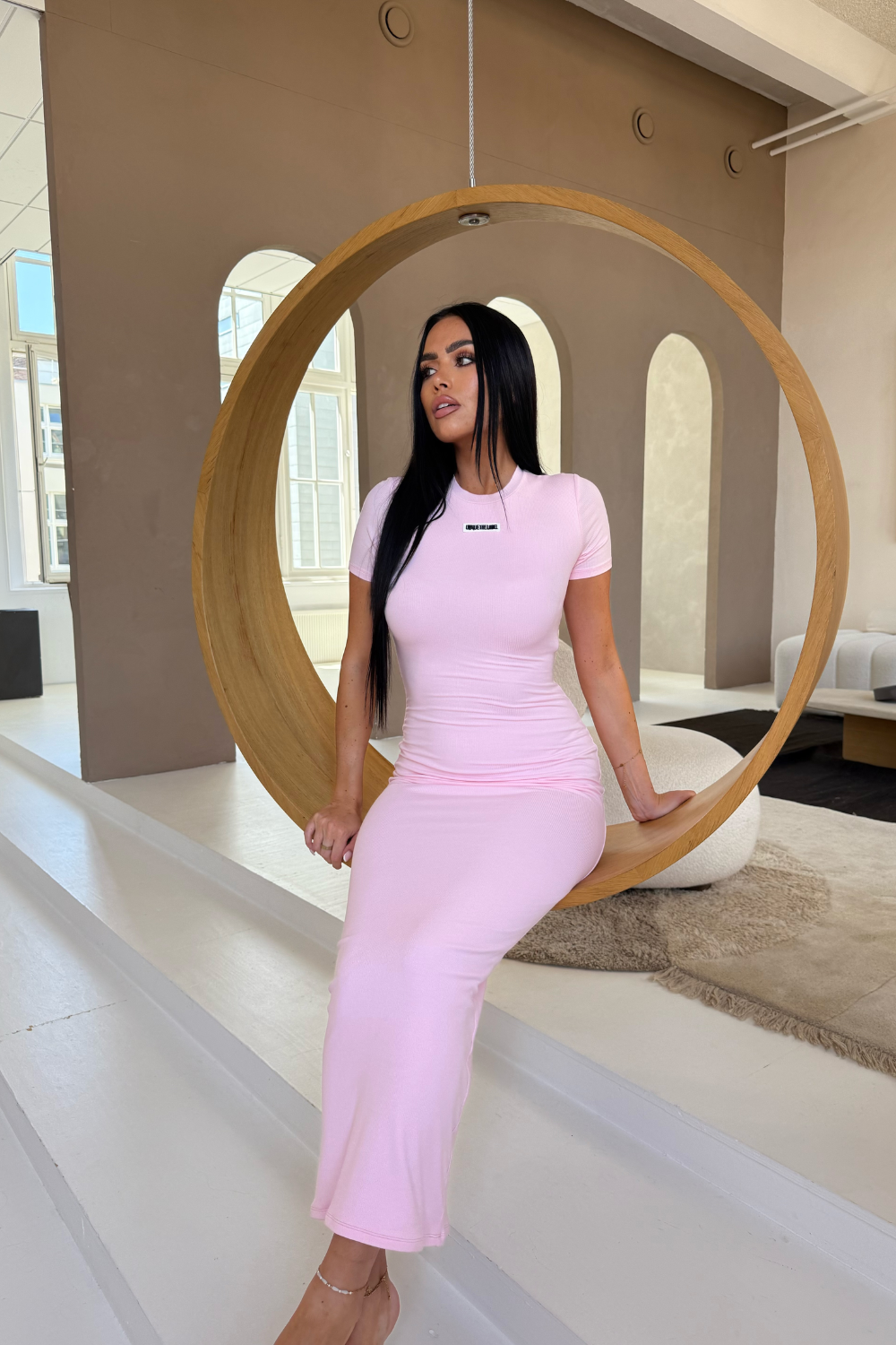 UNIQUE THE LABEL Donna T-shirt Ribbed Dress Powder Pink