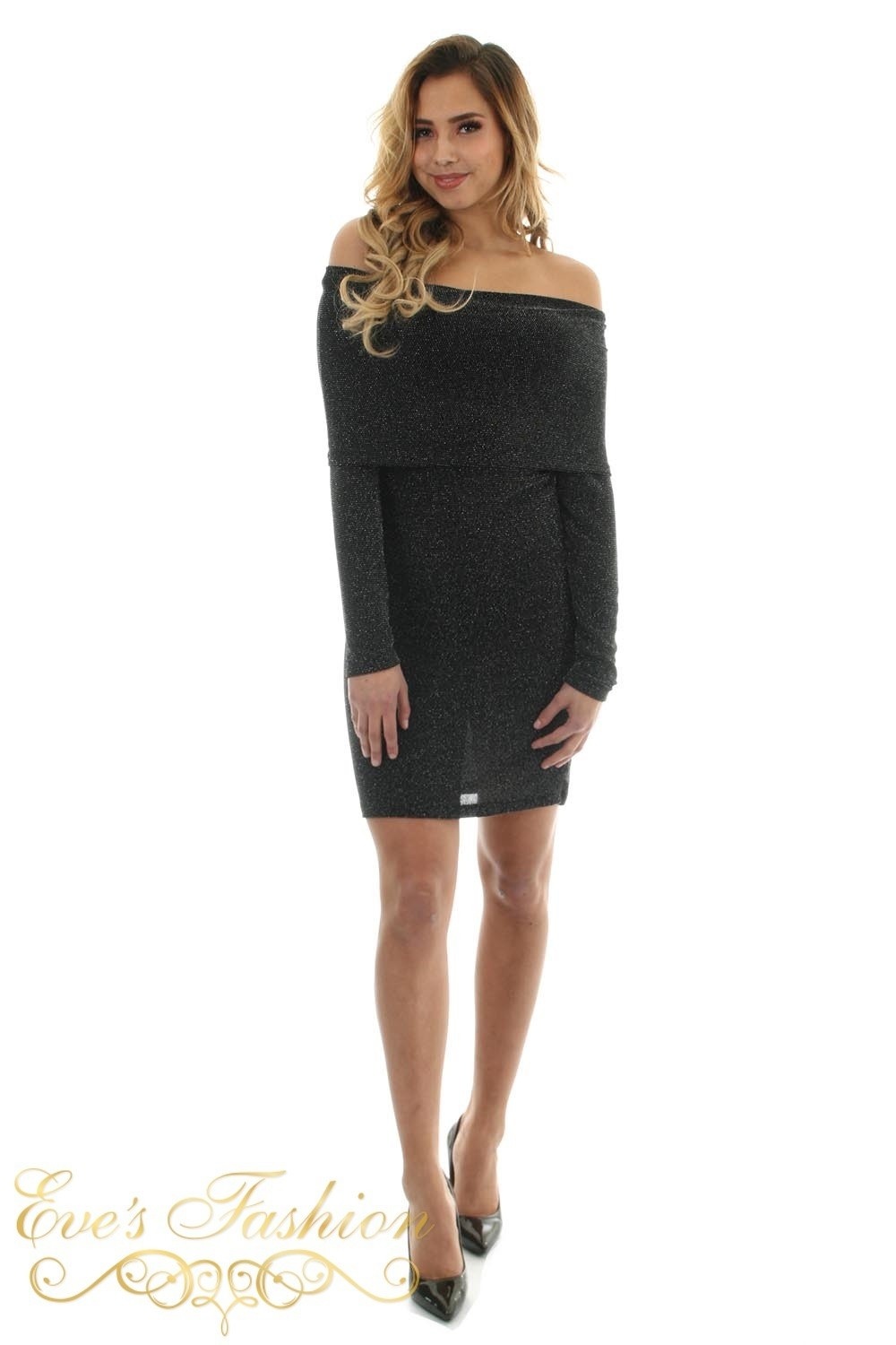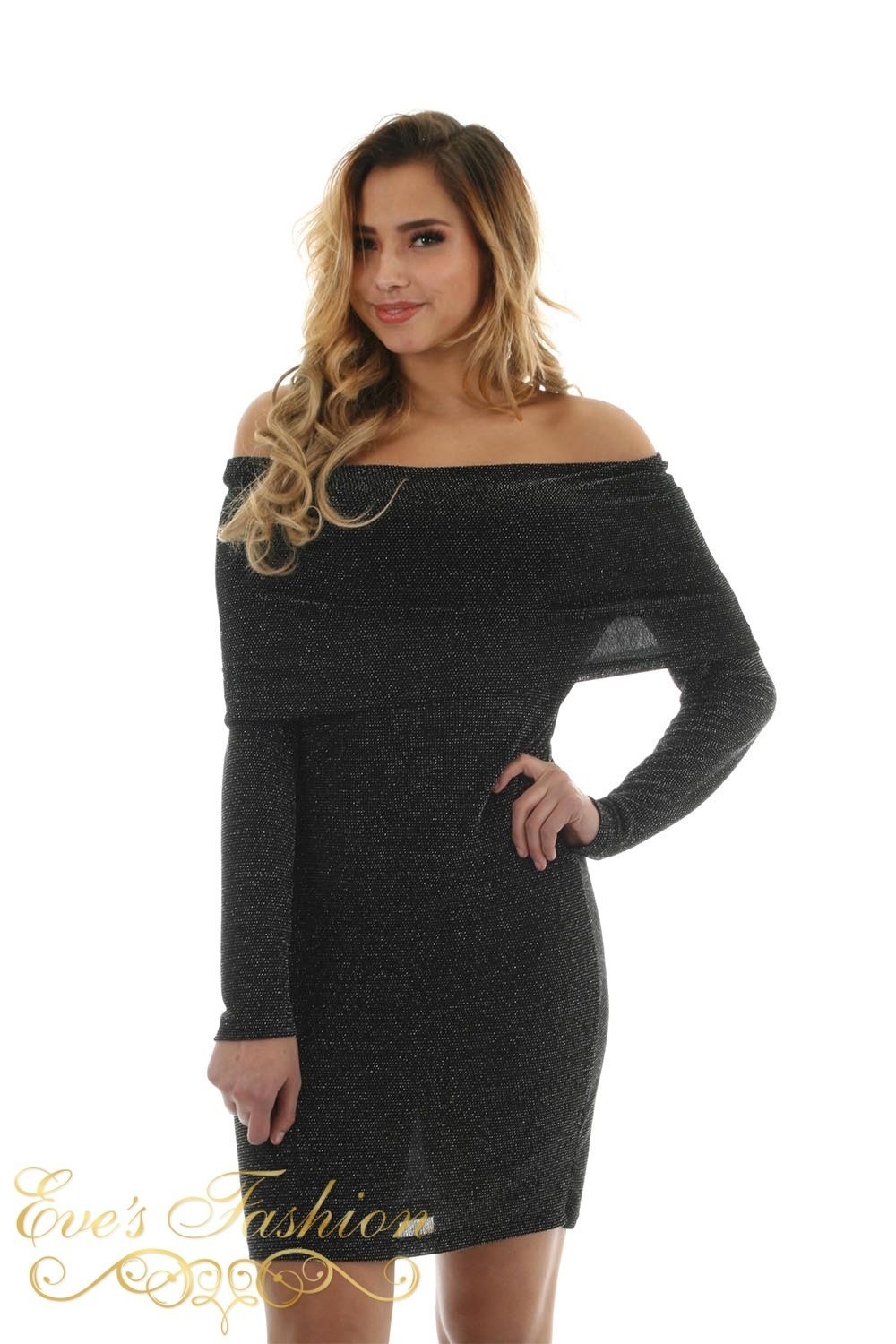EVE Eve - Off Shoulder dress Glitter Zilver