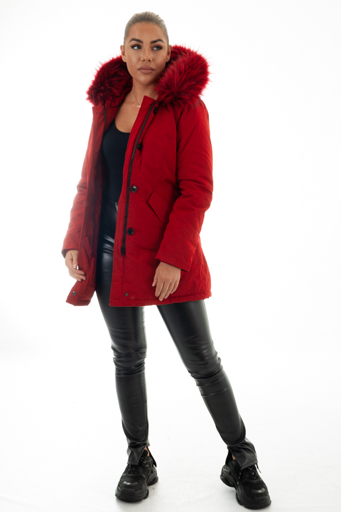 Are you ready for the season? Slay this winter season in the Eve Parka Ruby Red. Get it girl!