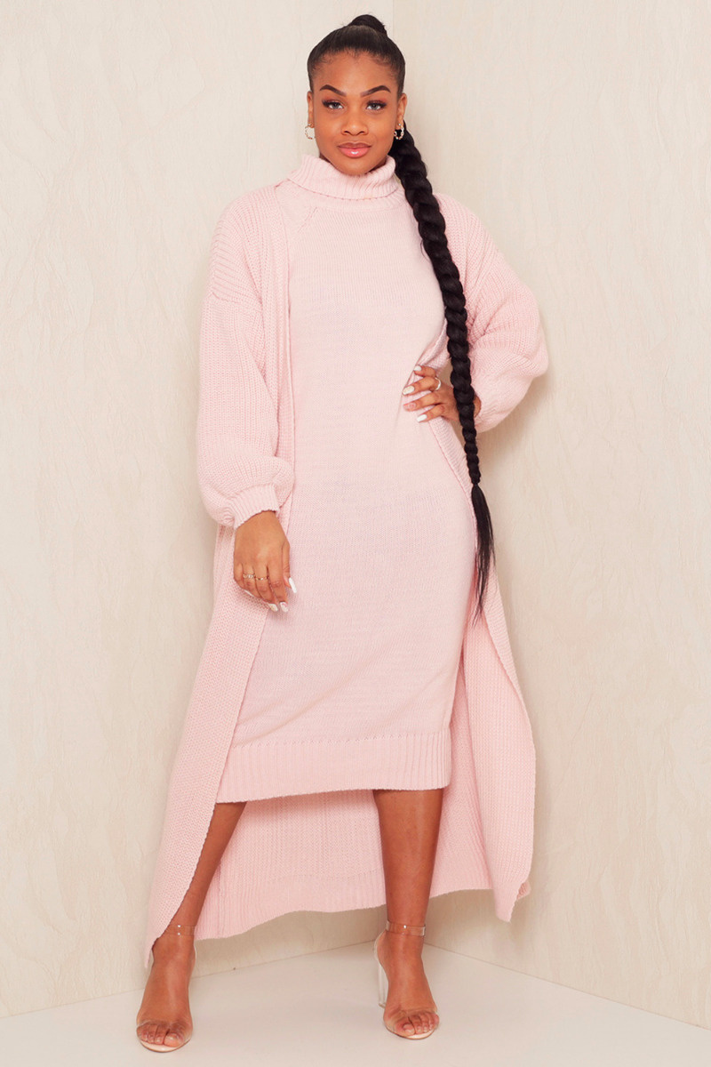 EVE Satisfied Knitted Turtle Neck Set Blush