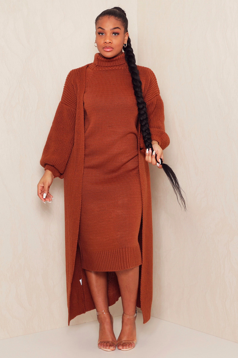 EVE Satisfied Knitted Turtle Neck Set Rust