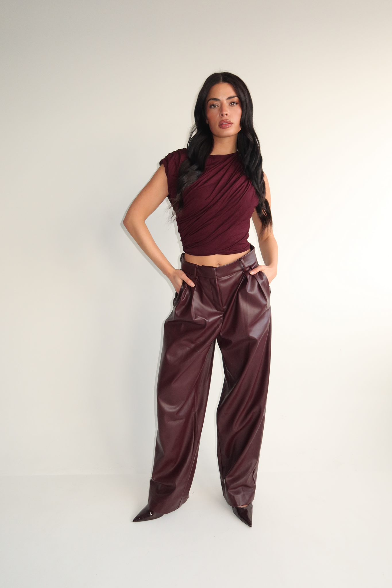 UNIQUE THE LABEL Ziva Leather Pantalon Burgundy