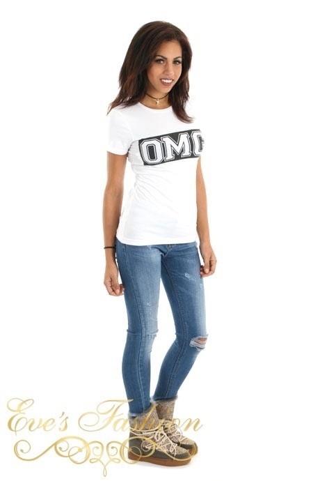 AW Private Label - OMG Tshirt White Model draagt maat XS