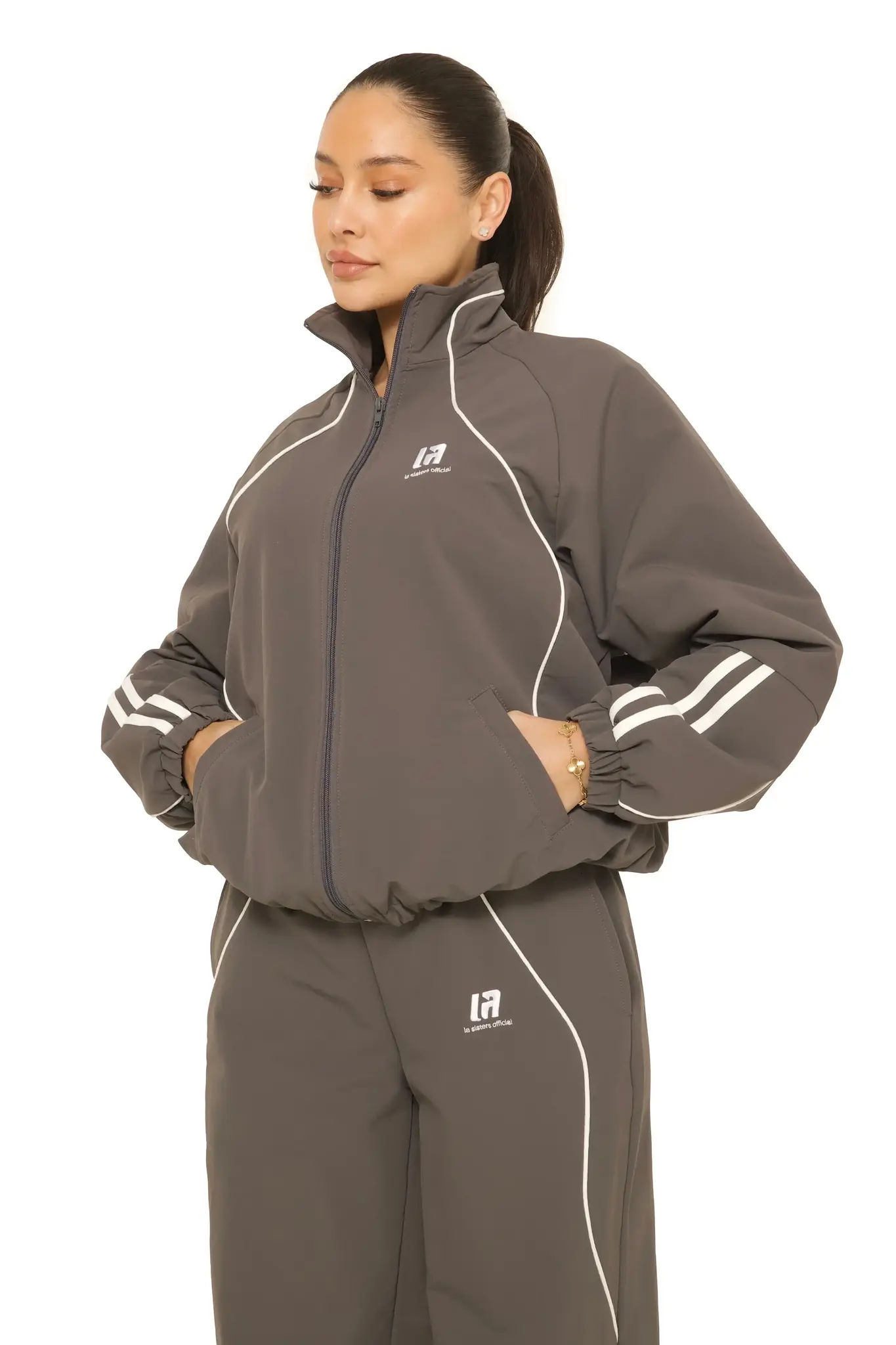 The LA Sisters LA Official Zip Up Jacket Grey is not your average piece, this is a statement piece with attitude. Its sporty aesthetic, inspired by classic track jackets, instantly delivers that recognizable LA Sisters street energy. The relaxed fit and soft fabric provide comfort, but it is the bold presence that truly makes this piece stand out. The logo detailing and strong design lines create a confident, almost retro sport vibe while still feeling modern and current. This is the jacket you wear when your outfit is meant to be seen. Pair it with the matching pants for a full statement set, style with sneakers and a cap for an edgy street look, or contrast it with a fitted top for a sharp feminine balance. This is not a safe choice, this is character in clothing form. Available exclusively at Eve’s Fashion.