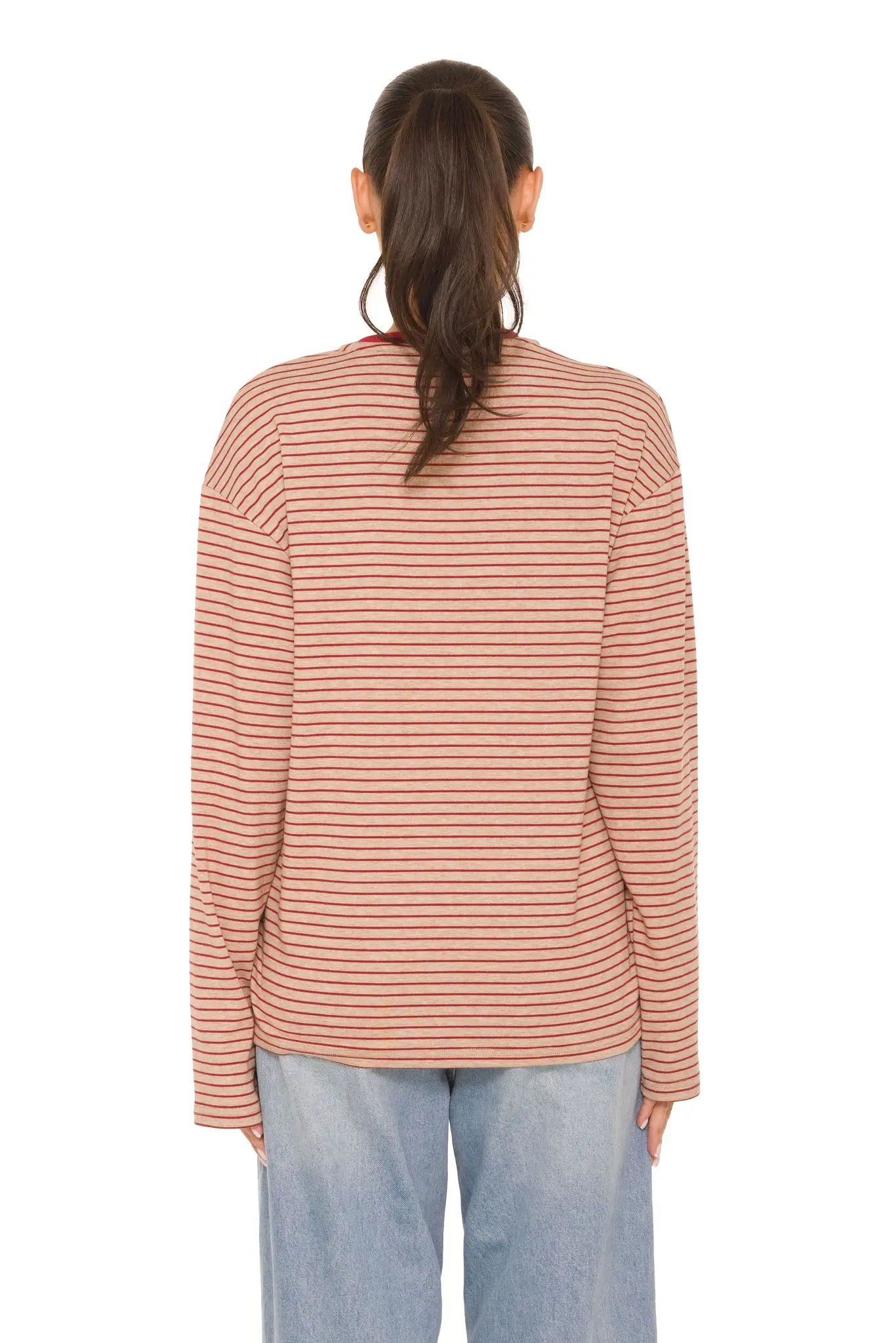 LA SISTERS Long Sleeve Oversized Striped Tee Beige