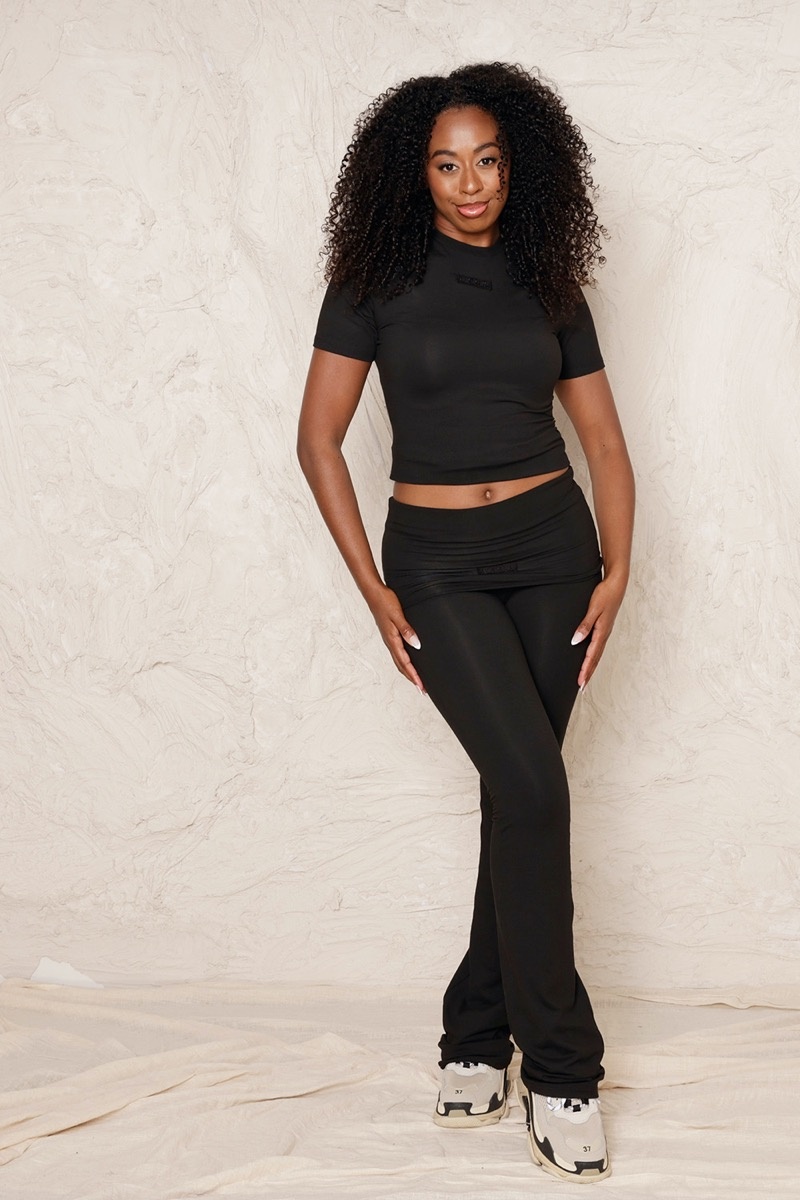 Introducing the Super Soft Noelle Pants in Black. These folded pants offer luxurious comfort and a stylish, high-waisted fit that flatters your silhouette. Perfect for effortless chic, whether lounging at home or stepping out, they combine ultimate softness with a sophisticated design. Elevate your wardrobe with this essential piece of cozy elegance and comfy fashion.