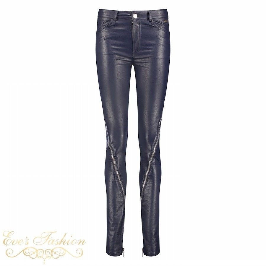 MARIA TAILOR Tailor&Elbaz - Faux Leather Zip Pants Blue/Silver