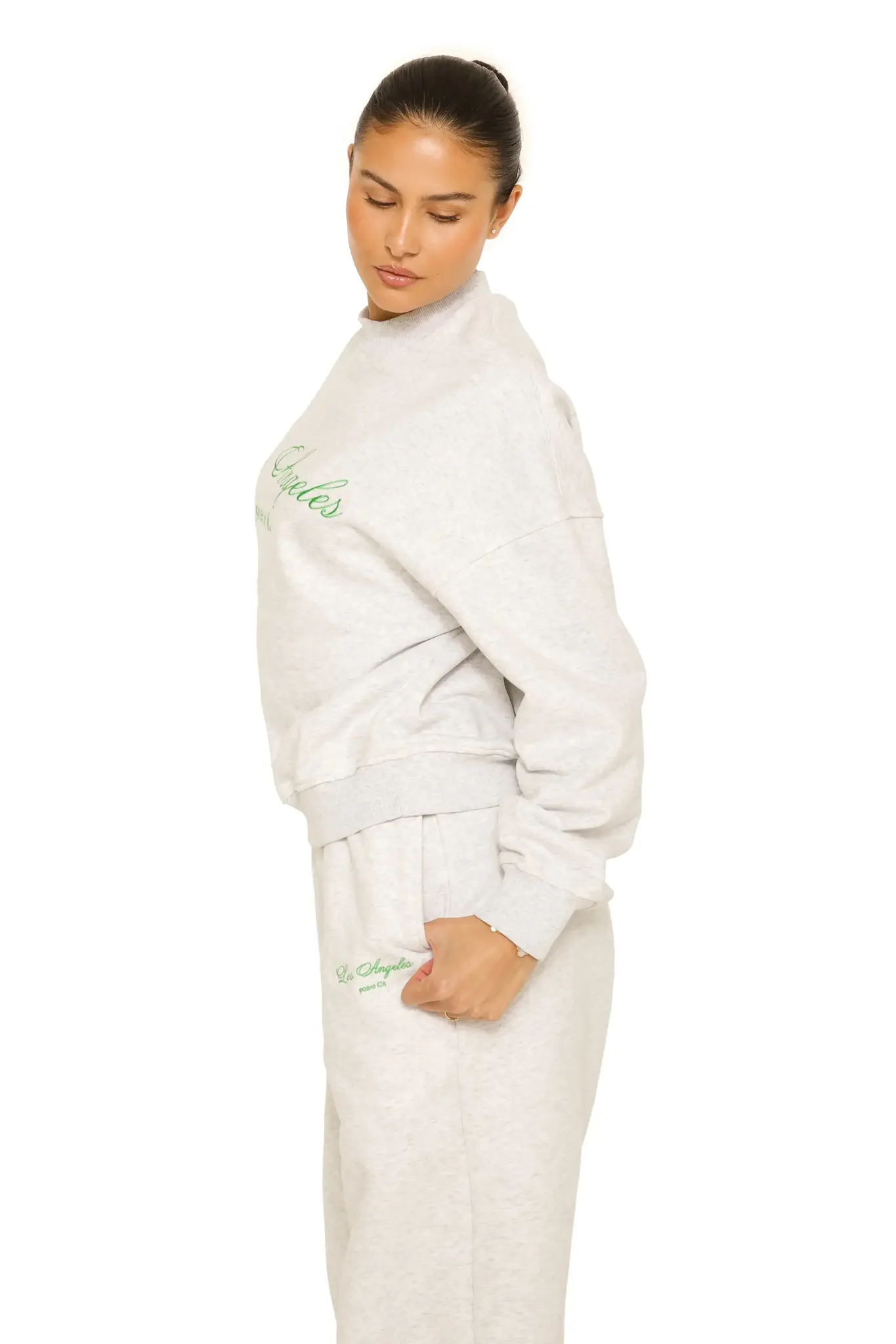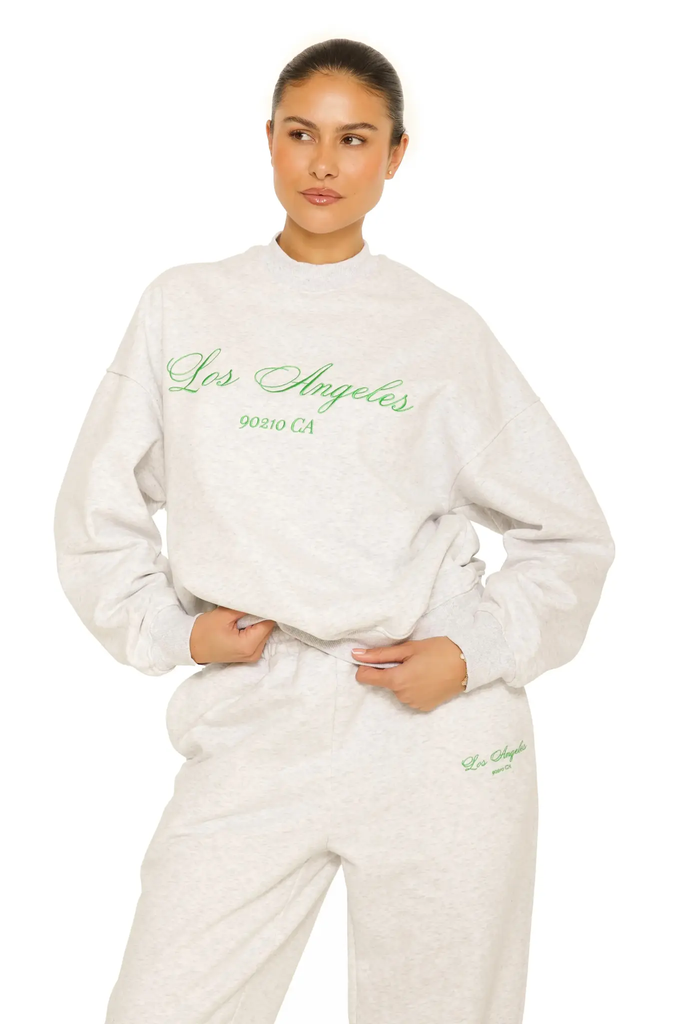 The LA Sisters The Hills Crewneck in Green brings refinement to casual dressing. The soft cotton blend feels luxurious, while the relaxed fit creates a natural, effortless drape. The embroidered LA Sisters logo on the chest in a subtle contrasting tone gi...